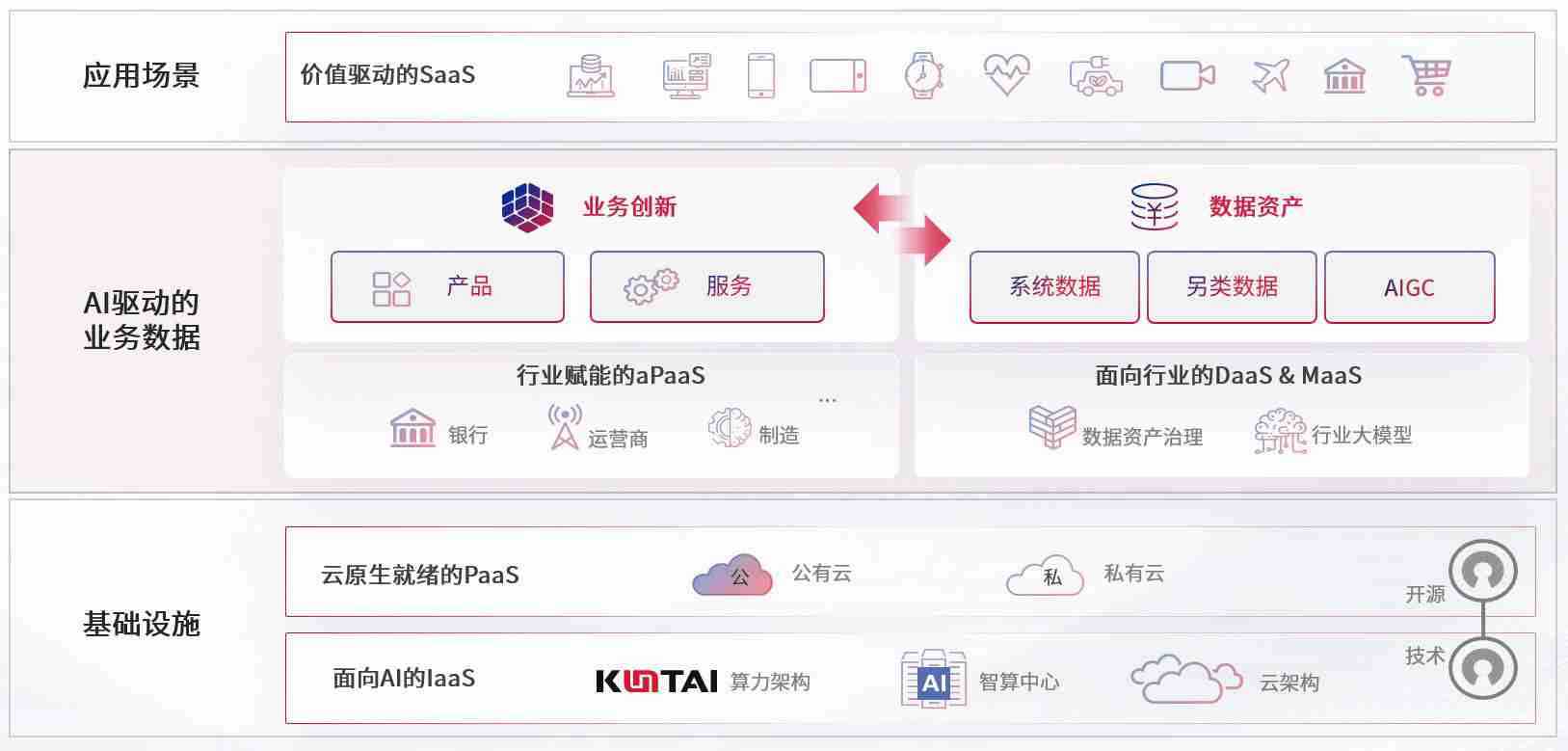 数字时代,,,,围绕企业数字化转型的关键要素,,,,z6com尊龙数码开创性的提出数云融合战略和技术体系框架,,着力在云原生、、、数字原生、、、AI原生和信创产业上架构产品和服务能力,,,,为处在不同数字化转型阶段的快消零售、、汽车、、、金融、、医疗、、、政企、、、、教育、、运营商等行业客户提供泛在的敏捷IT能力和融合的数据驱动能力,,,构建跨界融合创新的数字业务场景和新业务模式,,助力企业级客户建立面向未来的核心能力和竞争优势,,,全面推动社会的数字化、、、智能化转型升级。。